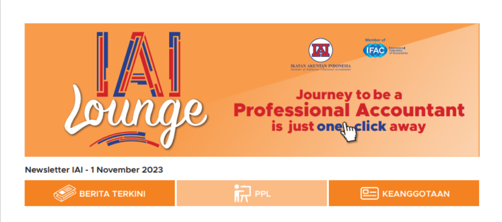 IAI menerbitkan newsletter untuk memberikan update terkait perkembangan akuntansi, standar profesi, dan keprofesian. Terlampir kami sampaikan newsletter edisi terbaru yang di dalamnya memuat informasi terkait SAK Internasional, Program Penyetaraan CA, dan berbagai informasi terkini lainnya.